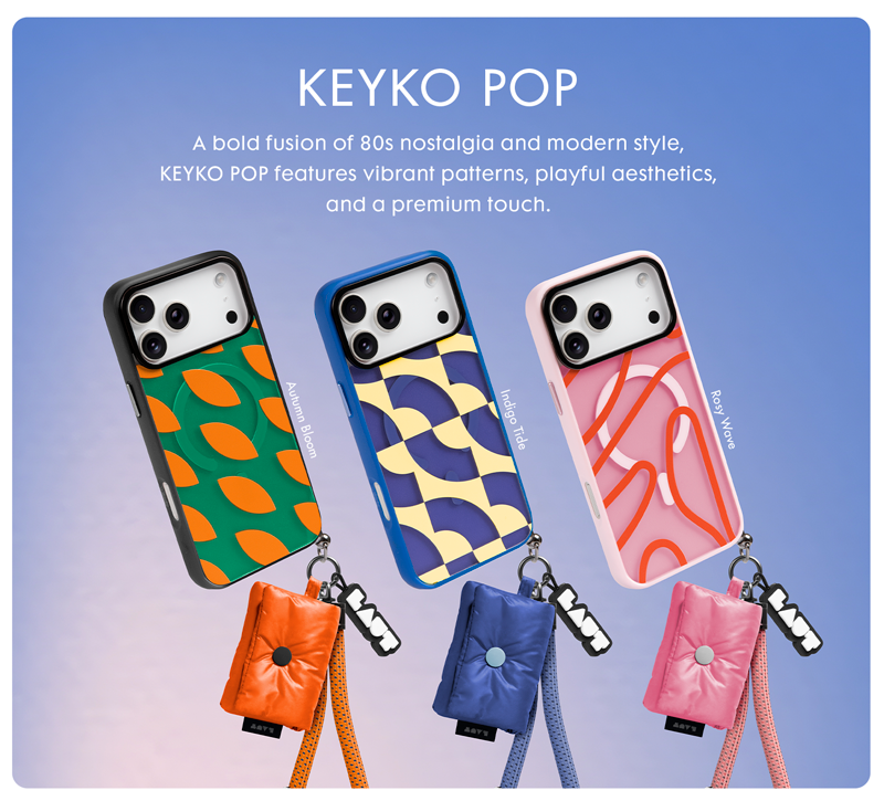 ユニークな素材のキーチャームと丈夫なストラップ付きで遊び心のあるシリーズです。
