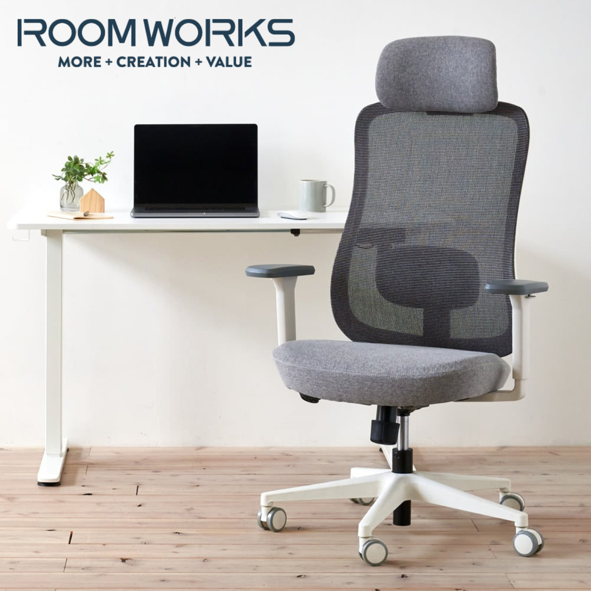 メッシュ素材とモールドウレタンを組み合わせた、多機能ファブリックメッシュワークチェア。