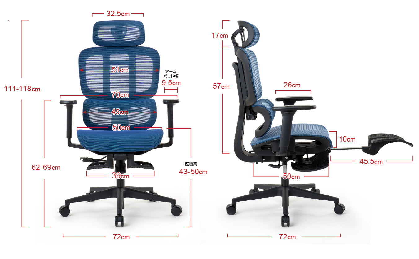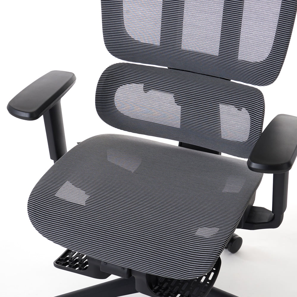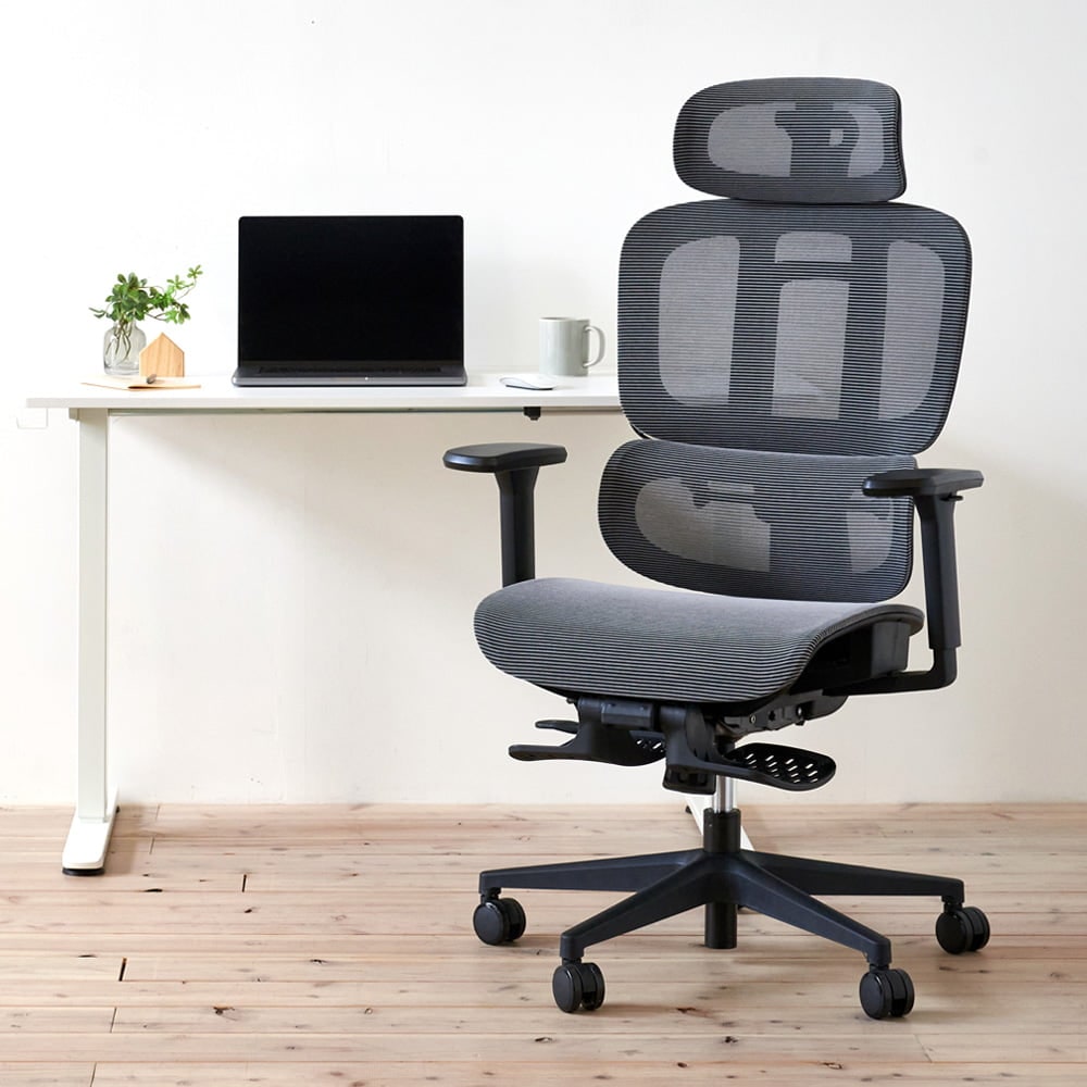 高弾力と艶のある高級感が特徴のエラストマーメッシュを使用した多機能フルメッシュワークチェアです。 シンクロロッキング、シート前後スライド、可動式ランバーサポート、フットレストなど、 多彩な機能が快適な座り心地をサポートします。