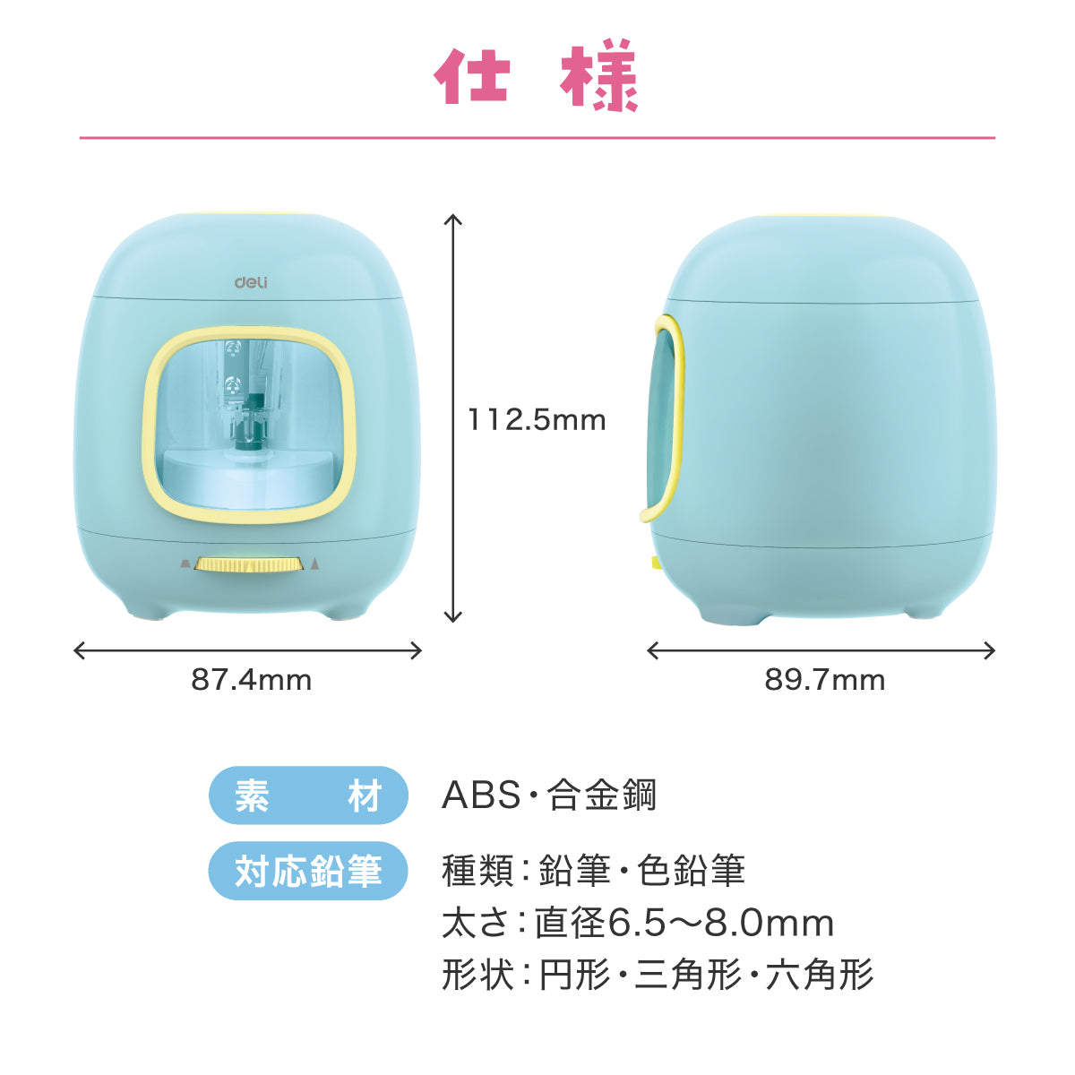コンパクトで持ちやすいかわいいデザインの電動鉛筆削り