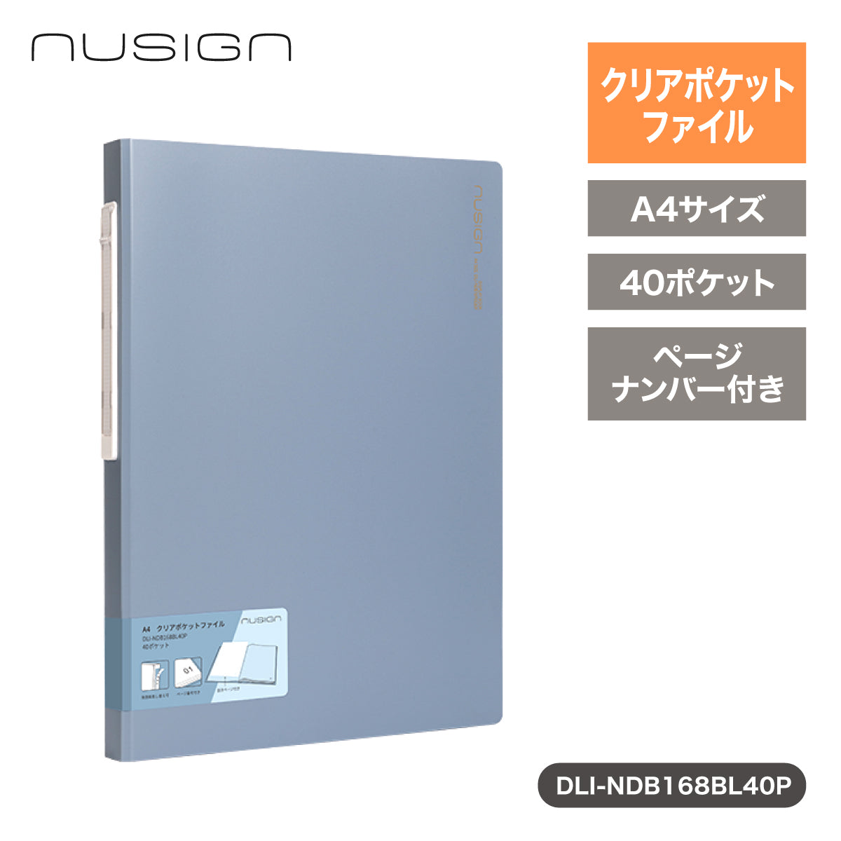 A4クリアポケットファイル 40ページ ページ番号付き ブルー