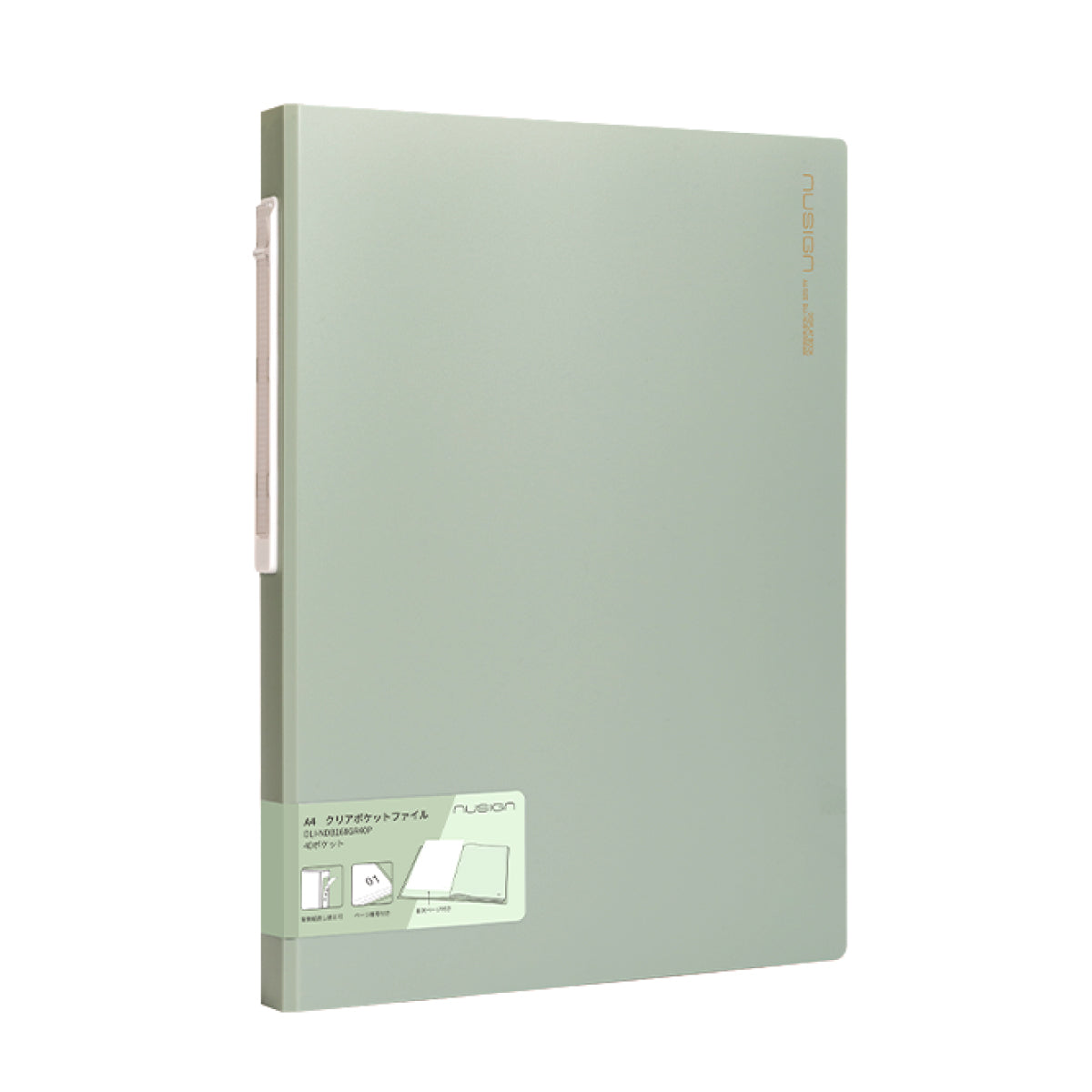 A4クリアポケットファイル 40ページ ページ番号付き グリーン