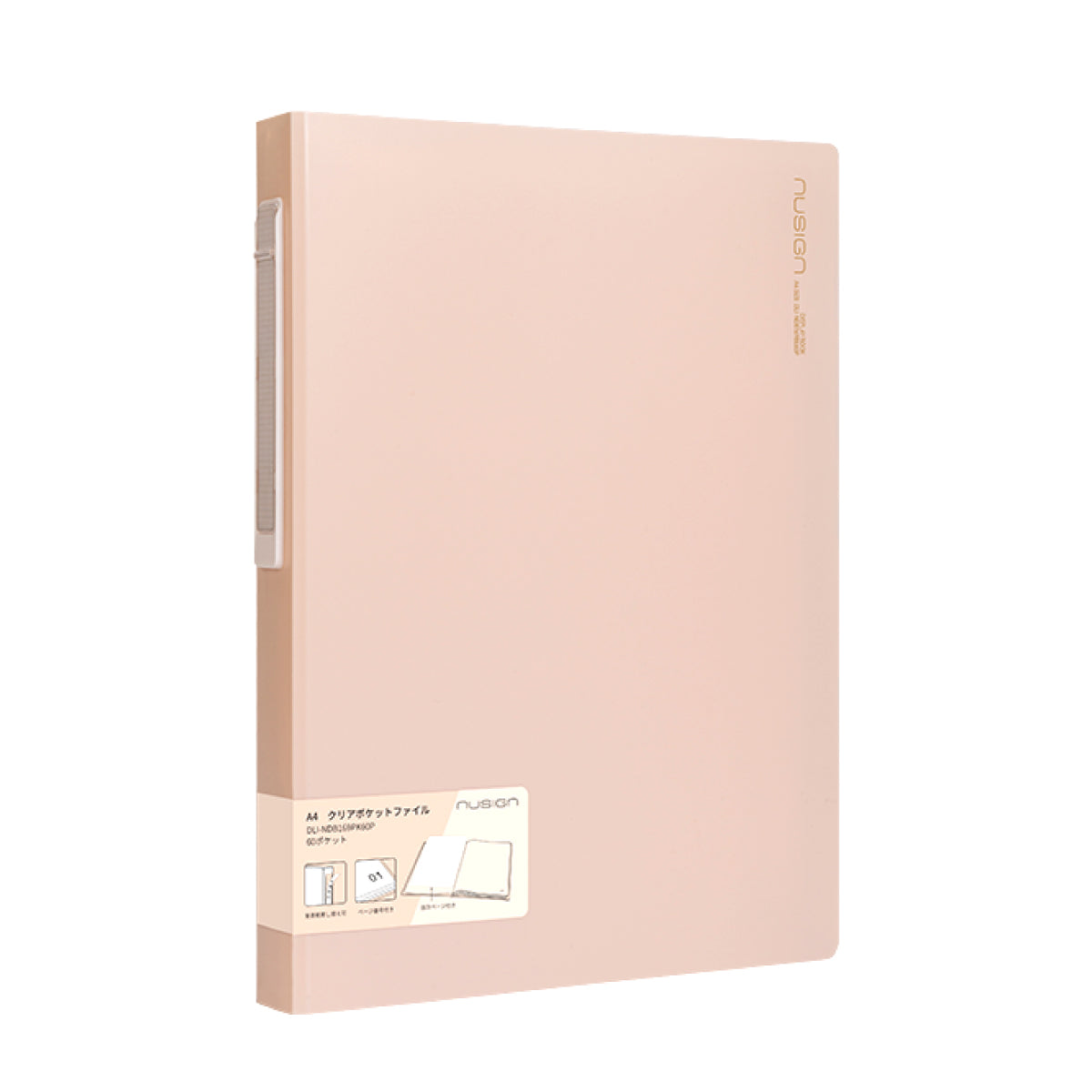 A4クリアポケットファイル 60ページ ページ番号付き ピンク