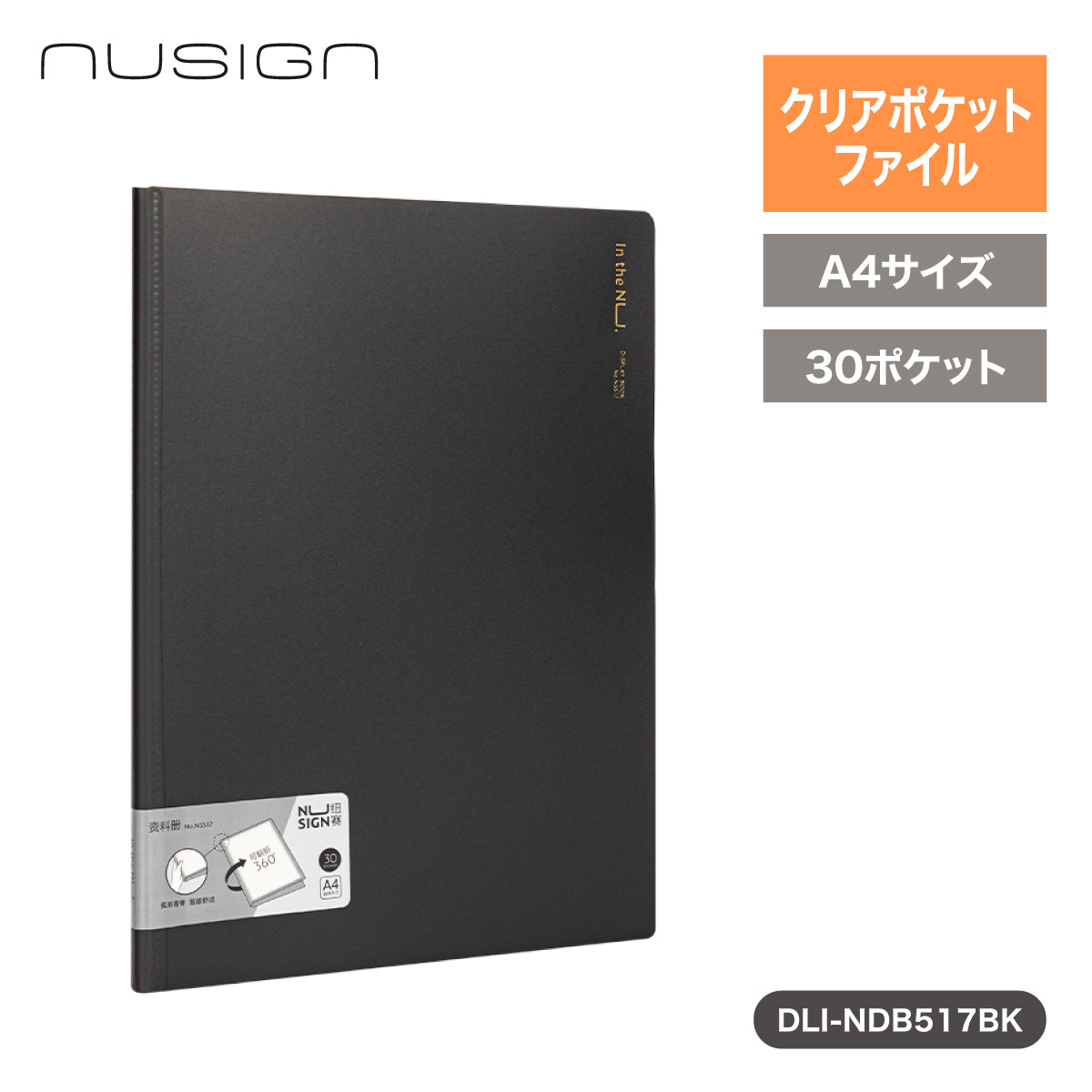 A4クリアポケットファイル 30ページ 折り返せる ブラック