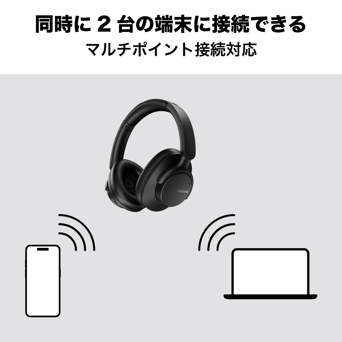 Bluetoothマルチポイント接続により、2台のBluetoothデバイス間をシームレスに接続・切り替え。