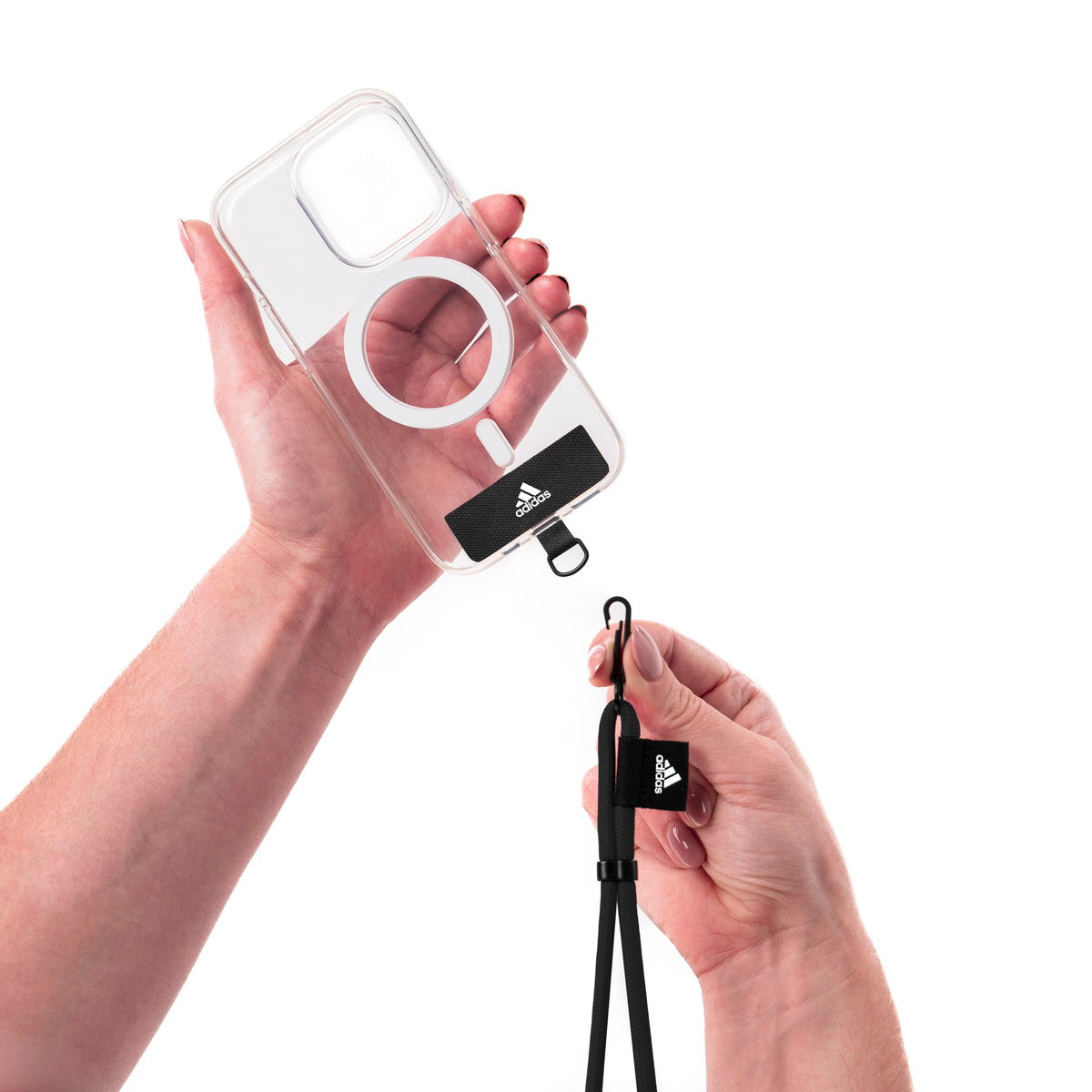 ストラップ調整すれば、首にかけたり、肩掛けにしたり、いつでもスマートフォンにアクセスできます。